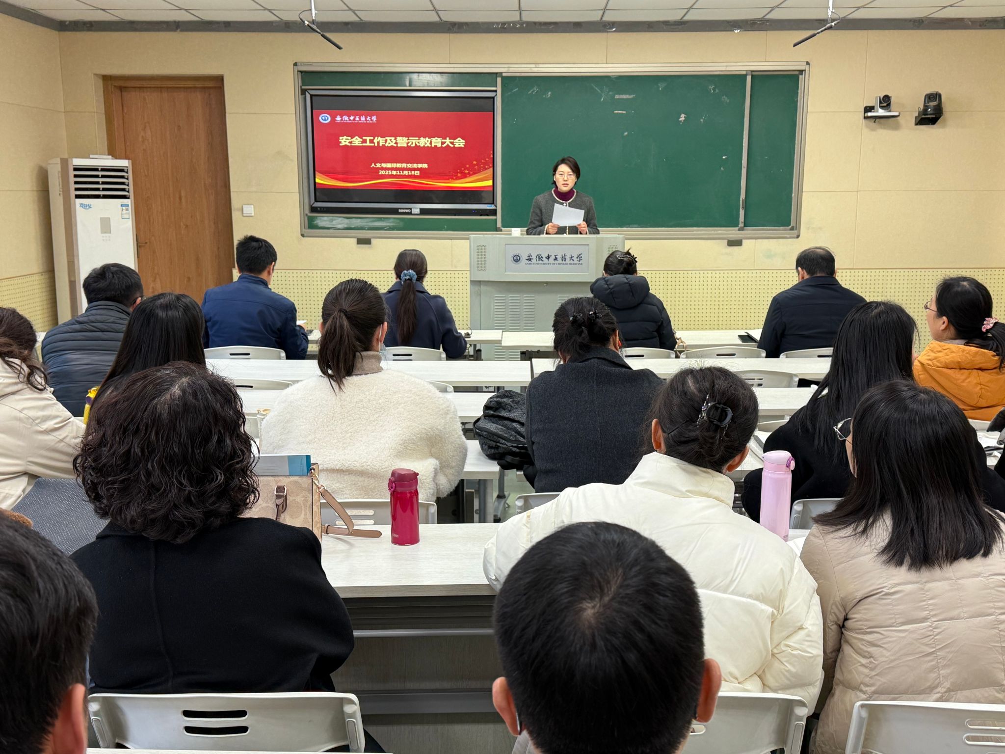 11月18日上午,人文与国际教育交流学院召开安全工作暨警示教育大会,学院党总支书记叶兰兰主持,全体教职工参会。叶兰兰传达了2025年安全工作委员会第二次会议暨校园风险防控第五次专题调度会议精神,通报了学校...