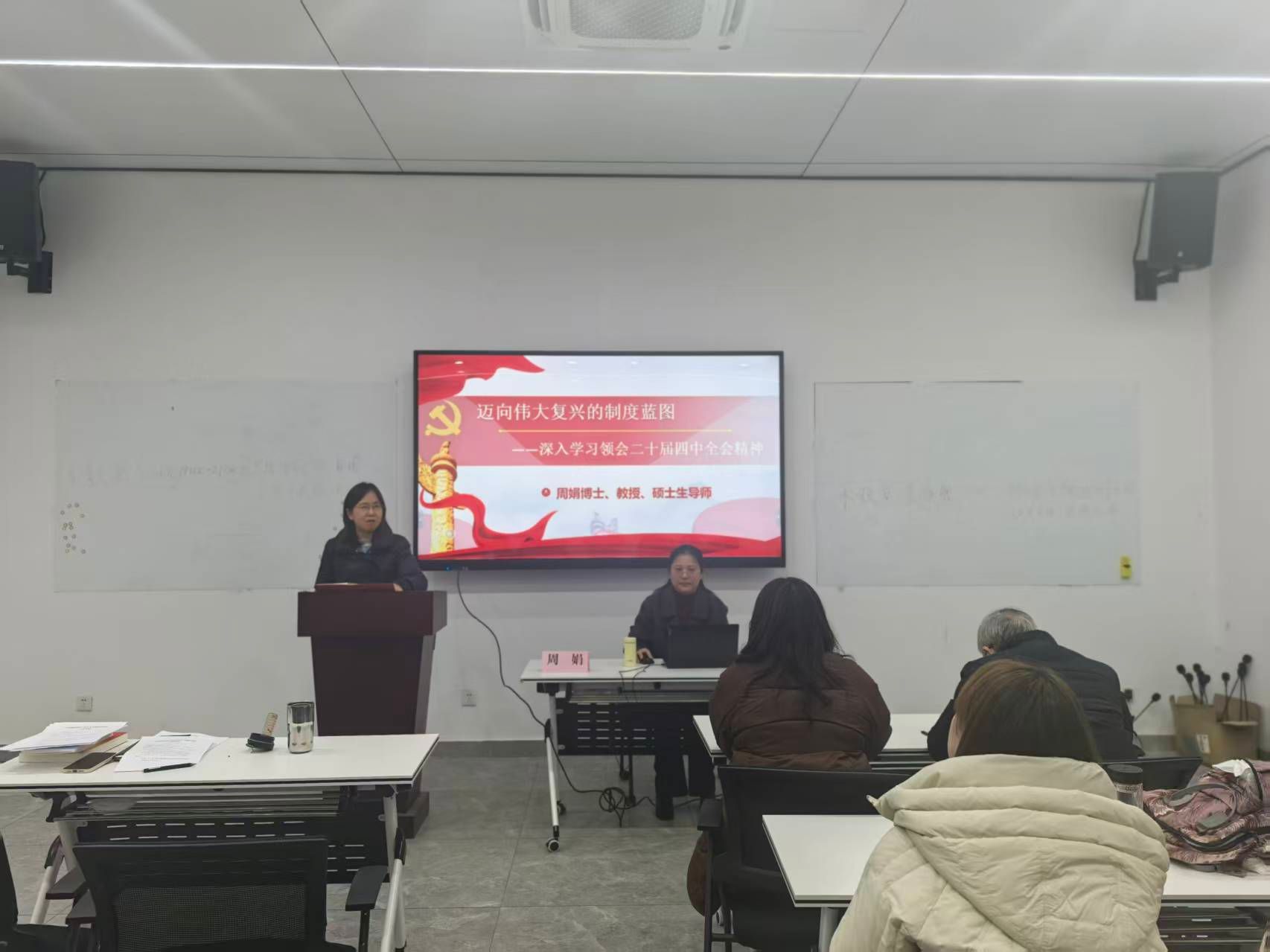 为学习贯彻党的二十届四中全会精神,切实把思想和行动统一到全会部署要求上来,12月24日,针灸推拿学院在元化草堂举办专题报告会,马克思主义学院硕士生导师周娟教授以《迈向伟大复兴的制度蓝图—深入学习领会党...