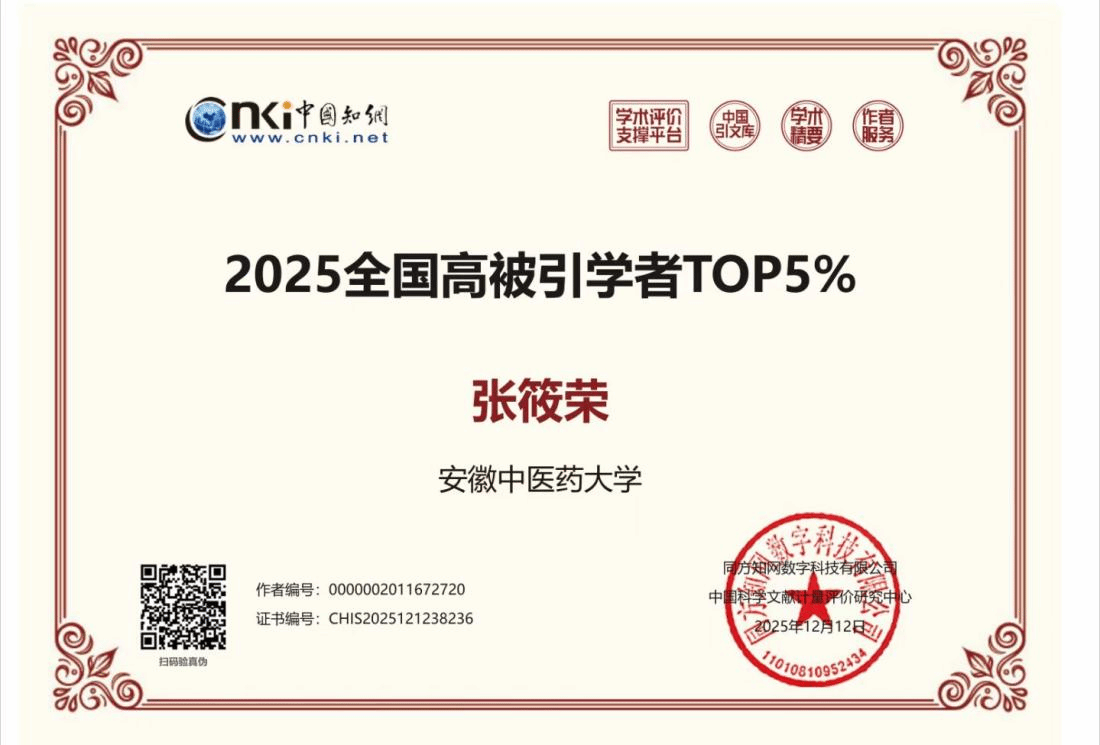近日,中国知网下属中国科学文献计量评价研究中心正式发布最新一期“全国高被引学者”榜单,我院张筱荣教授凭借稳定的学术成果与影响,成功入选全国高被引学者TOP5%榜单。这是张筱荣教授继2024年之后再次入选该榜...
