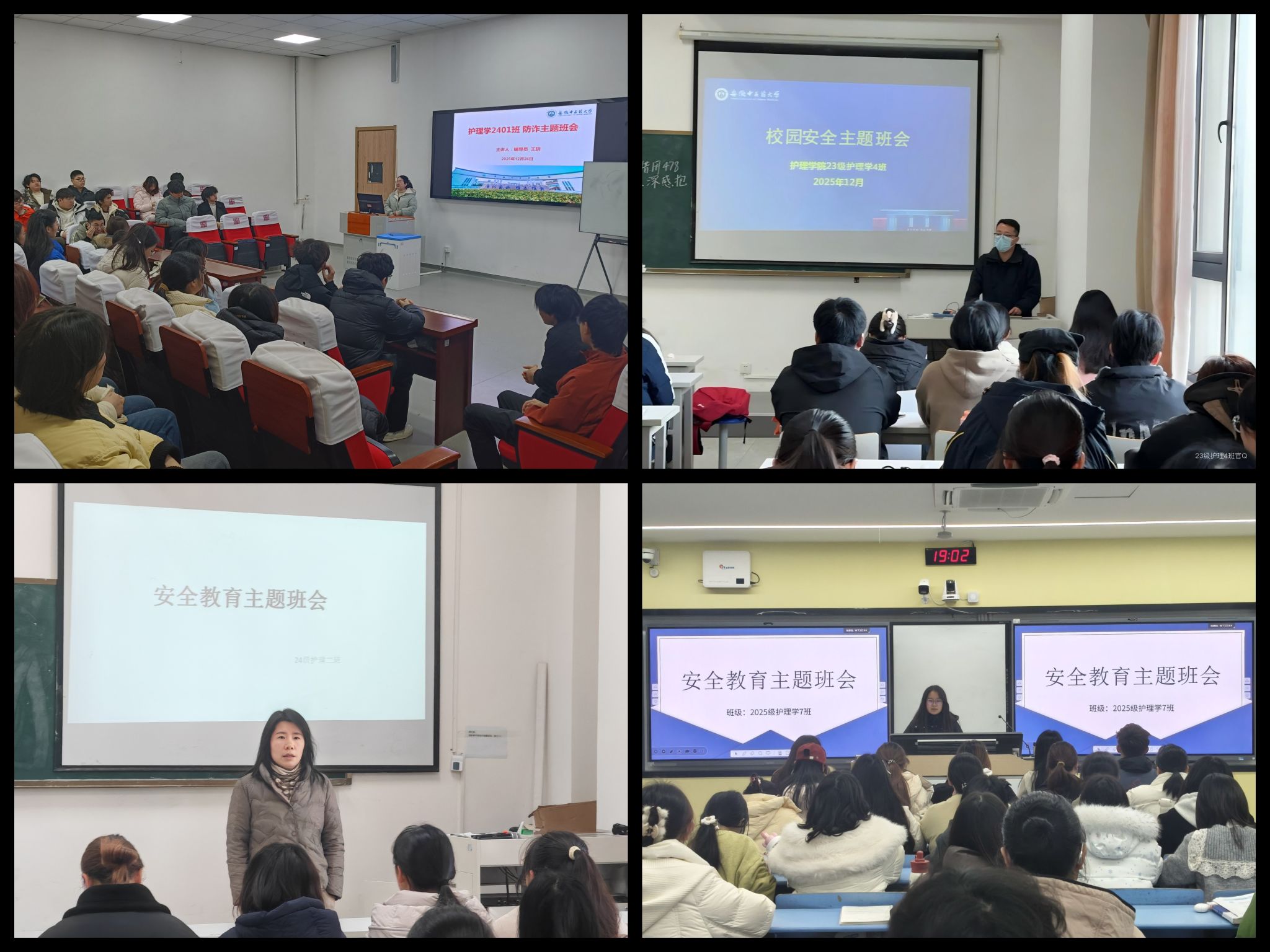 岁末年初,为筑牢校园安全防线,切实保障学生人身与财产安全,护理学院组织各班级全覆盖开展校园安全教育主题活动。学院高度重视此次活动,要求各班级结合实际制定方案,通过主题班会、案例讲解等形式,围绕人身...