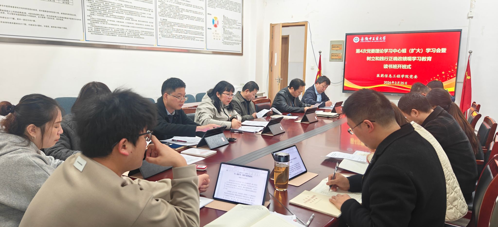 3月25日下午,医药信息工程学院举办第4次党委理论学习中心组(扩大)学习会暨树立和践行正确政绩观学习教育读书班开班式。会议由党委书记高霞主持,学院领导班子成员、党委委员、各党支部书记参加会议。会议集体...