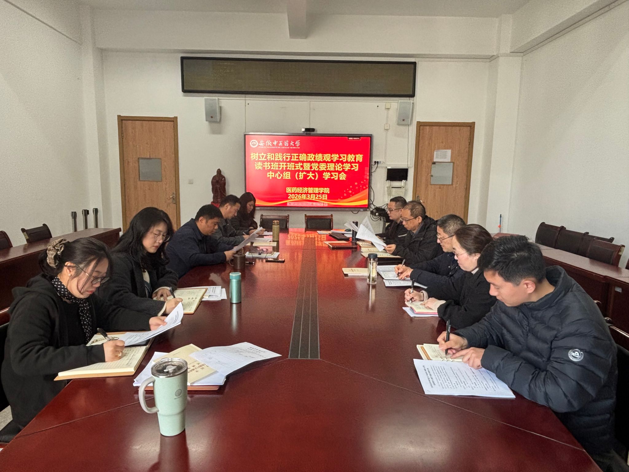 3月25日,医药经济管理学院召开树立和践行正确政绩观学习教育读书班开班式暨党委理论学习中心组(扩大)学习会。学院党政领导、党委委员、各党支部书记参加会议。会议由学院党委书记张军主持。开班式上,张军介绍...