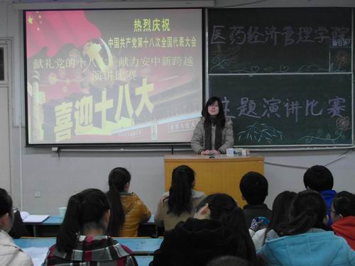 为更加深入的学习党的十八大精神,丰富大学生课余生活。经管学院于12月3日晚举办了“献礼党的十八大 献力安中新跨越”主题演讲比赛。 该院各班级同学们积极报名,踊跃参与,对此次比赛投以极高的热...