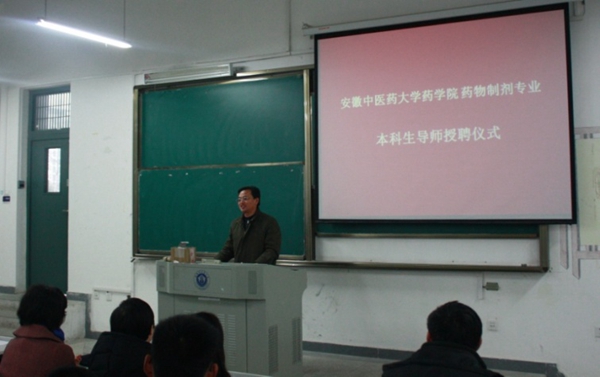 为更好地贯彻落实“以学生为中心”的教育教学理念,指导学生巩固专业思想,激发学生专业学习兴趣,药学院从2015级药物制剂专业开始推行本科生导师制,并于2016年1月6日下午在少荃湖校区举行了首期本科生导师授聘...