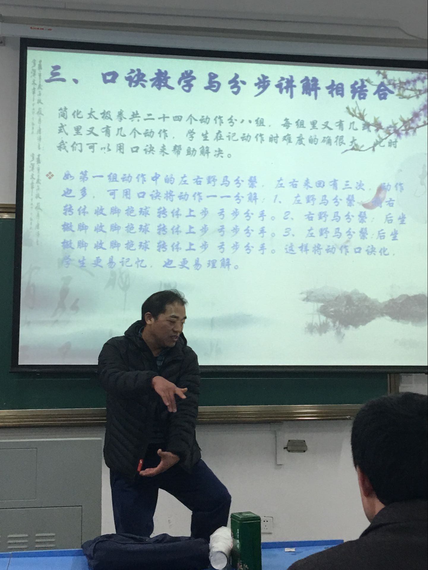 为了统一教学动作,规范教学要求,提高教学质量,增强业务技能,1月6日,体育部第一教研室根据体育教学大纲要求和内容,开展了为期一天的太极拳竞赛和教研活动。教务处王鹏副处长和肖洁老师应邀出席本次竞赛和教...