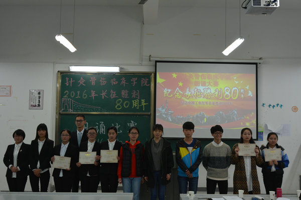 为纪念长征胜利80周年,针灸骨伤临床学院于10月30日晚18:00在教学楼A108成功举办长征胜利80周年新生朗诵比赛。本次活动邀请了学生会干部及15级诵读比赛优秀选手担任评委。 本次活动共有二十一名新生参赛,比赛...