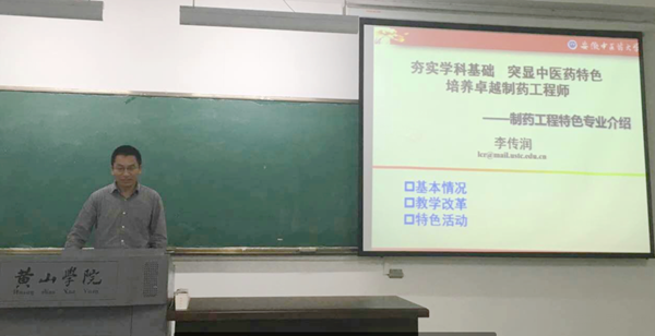 安徽省药学会制药工程协会2016学术年会暨教学研讨会于2016年11月19-20日在黄山学院召开,会议由安徽省药学会制药工程专业委员会主办,黄山学院承办。我校药学院药物化学系主任李家明,副主任李传润,教师汤青,教...