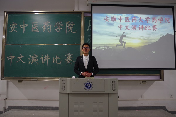 2016年12月2日晚5:30,安徽中医药大学药学院演讲比赛在教学楼A110教室举行。16药物制剂王帅虎获得一等奖。 本次比赛共有十名选手参加,分为命题演讲和即兴演讲两轮,设有“红军路漫漫,长征艰苦行”、“青年与...