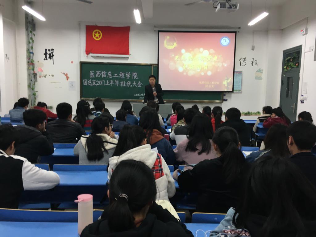 3月28日晚,医药信息工程学院团总支组织开展2017上半年推优工作,18个团支部推选的30名优秀团员在学习习近平总书记讲话基础上,结合自身成长发展,依次分享“怎样做一名合格团员”。 推荐优秀团...