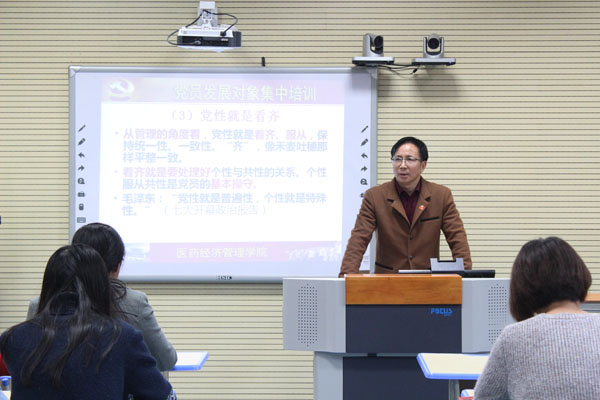 4月5日中午,医药经济管理学院党总支书记吴成海在B7-436教室为学院本期学生党员发展对象上党课。 吴成海要求党员发展对象要自觉加深对党的认识,端正入党动机,主动学习党的规章制度,积极参加政治生活,提高党...