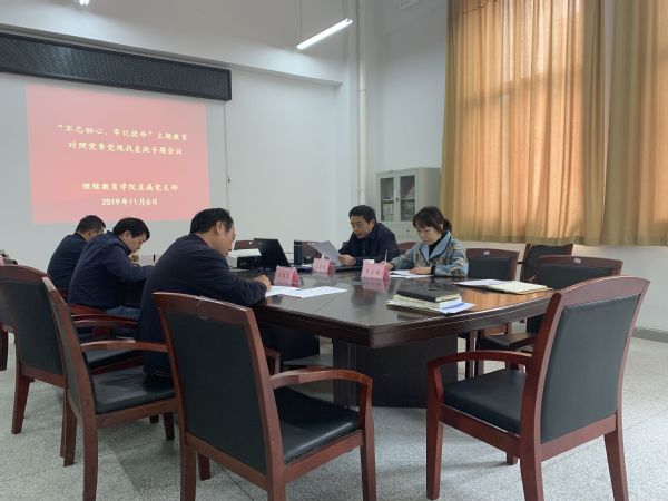 11月6日上午,继续教育学院直属党支部召开“不忘初心、牢记使命”主题教育对照党章党规找差距专题会议,会议由学院书记王其巨主持,学校“不忘初心、牢记使命”主题教育第三巡回指导组马小娟列席会议,学院直属党...