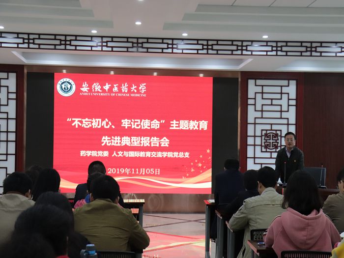 11月5日下午,药学院党委联合人文与国际教育交流学院党总支在药学院沁馨堂报告厅共同开展“不忘初心、牢记使命”主题教育先进典型报告会。药学院和人文与国际教育交流学院党总支党政领导班子成员、党委(党总支)...