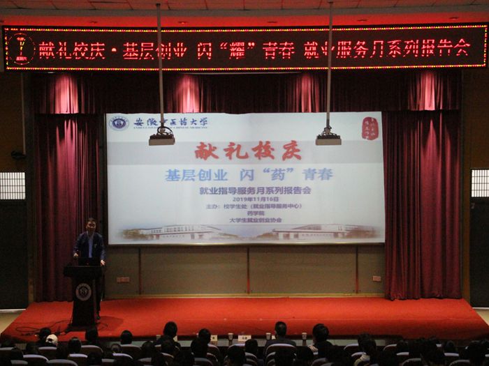 11月16日,由校学生处主办、药学院承办的就业指导服务月系列活动——基层创业校友报告会在至诚楼A114报告厅顺利举行。我校基层创业优秀校友应邀作专题报告,学生处副处长冯鑫出席大会,药学院就业工作秘书汪媛及2...