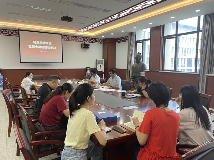 9月14日上午,针灸推拿学院召开党委理论学习中心组学习会,学院党政领导、党委委员、支部书记参加学习,会议由学院党委书记蒋宏杰主持。会议集中学习了习近平总书记给北京师范大学“优师计划”师范生的回信精神、...
