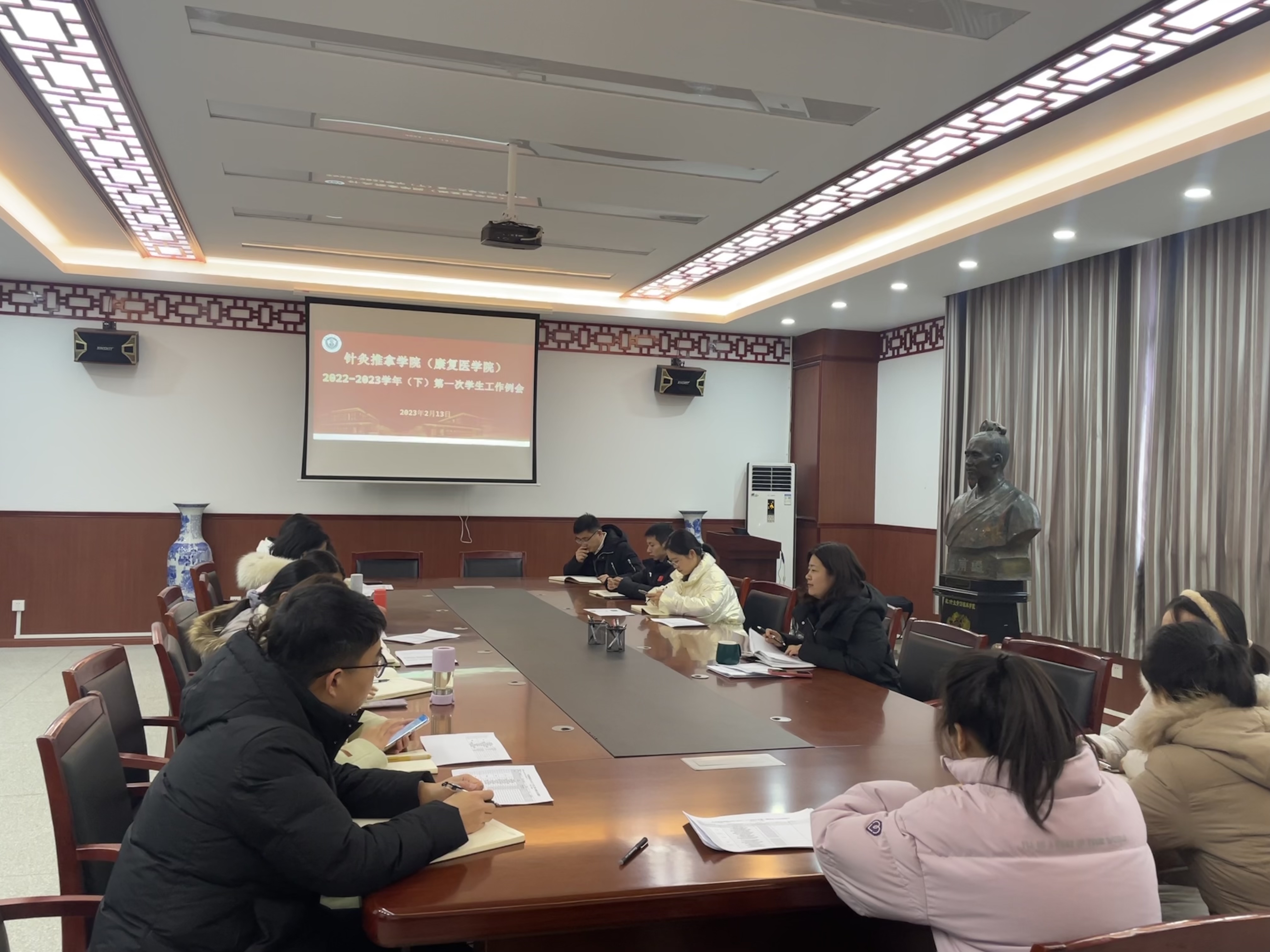 为确保新学期工作有序开展,2月13日下午,中医学院召开2023年春季学期开学工作部署会,全体辅导员老师参会。 会上,学院党委副书记宋婷婷就新学期开学工作和新型冠状病毒感染疫情防控工作进行具体部署,要求辅导...