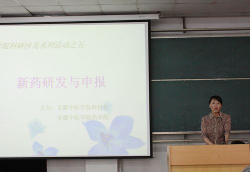 4月27日下午,药学院与学校科技处联合举办科技沙龙活动,本次活动主题是“新药研发与申报”,邀请安徽省食品药品监督管理局注册处处长黄少玉研究员做“药品注册管理形势与要求”的学术报告。该院副院长桂双英主持...