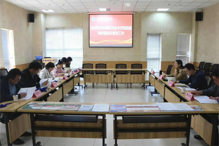 4月10日下午,安徽职业技术学院团委副书记贾亮亮一行6人来我校调研交流共青团工作,校团委书记叶兰兰主持座谈会议。 交流过程中,双方就团组织建设、学生会改革、思想引领、“第二课堂成绩单”、学生社团管理、...
