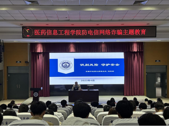 4月11日,医药信息工程学院举办防电信网络诈骗主题教育,邀请学校保卫处副处长刘亚洲作“识别风险,守护安全”主题讲座。学院党委副书记李亚、辅导员及学院2022级全体学生参加。 刘亚洲详细讲解、普及电信网络诈...