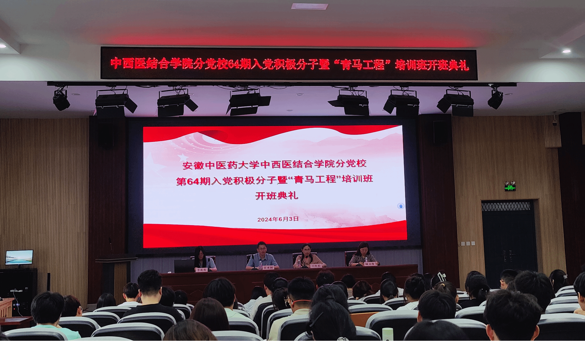 6月3日晚,中西医结合学院分党校第64期入党积极分子暨“青马工程”培训班开班典礼在学院254学术报告厅举行。学院党委书记王红松、党委副书记顾义俊出席开班式,学校党委组织部副处级组织员任亚硕到会指导,全体学...