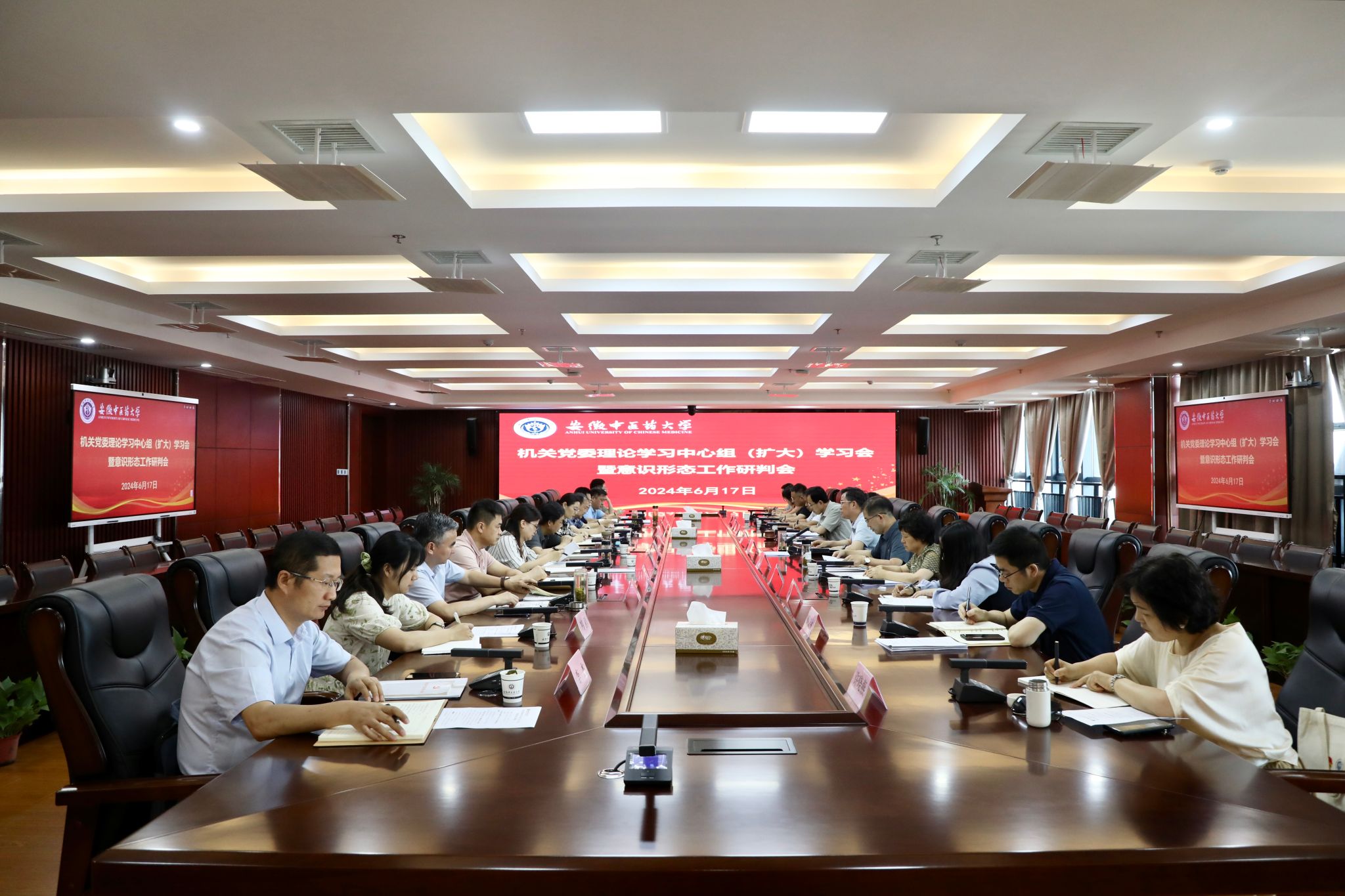 6月17日下午,机关党委组织召开理论学习中心组2024年第六次(扩大)学习会暨意识形态工作研判会。会议由校党委常委、机关党委书记、巡察办主任罗绍明主持。机关党委委员、各党支部书记参加会议。会上开展政治理论...