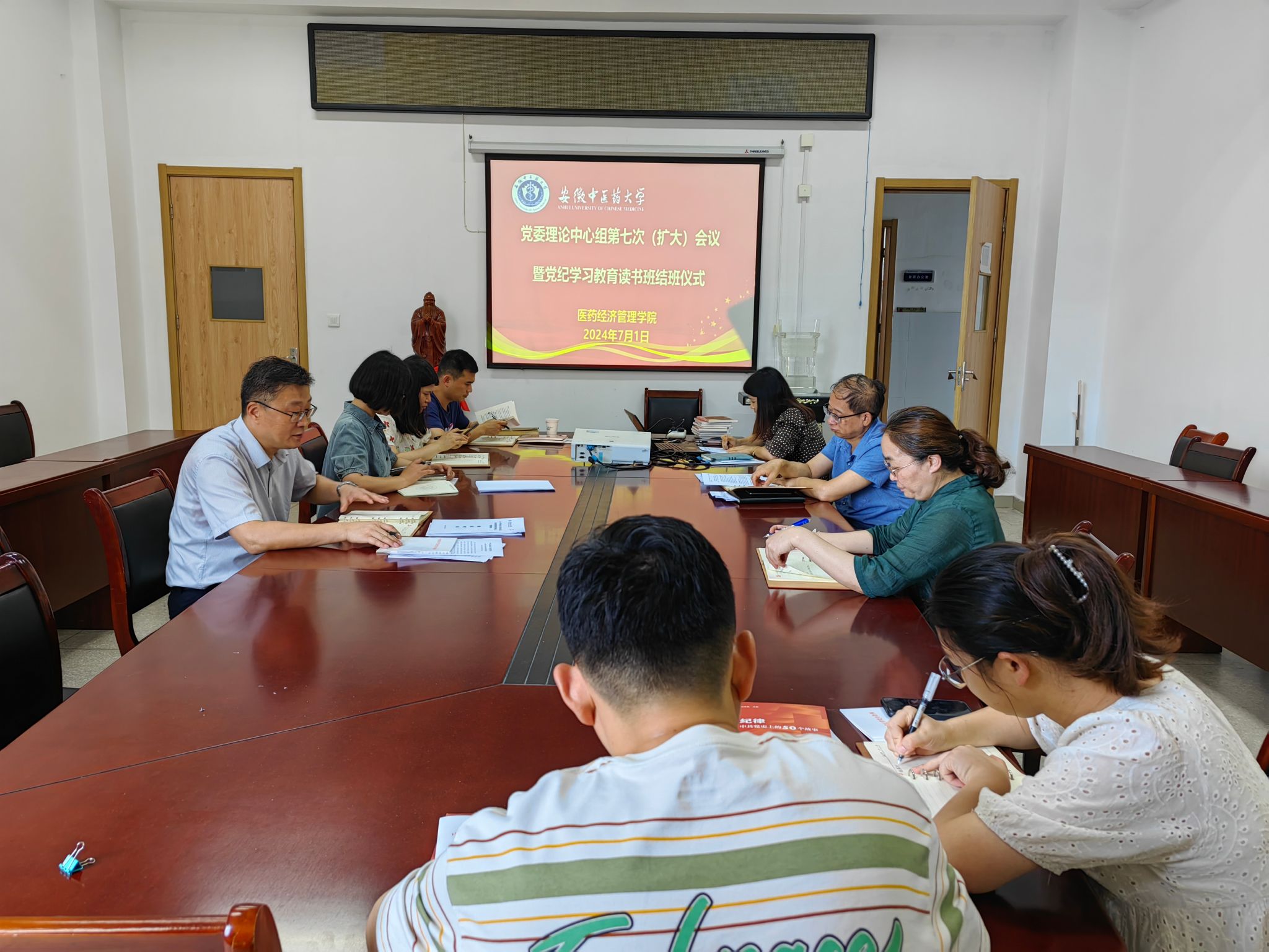 7月1日下午,医药经济管理学院开展党纪学习教育专题读书班结班仪式暨党委理论学习中心组第七次(扩大)学习会,学院党政领导、党委委员、各支部书记参加集中学习,会议由学院党委书记冯鑫主持。冯鑫对学院党纪学...