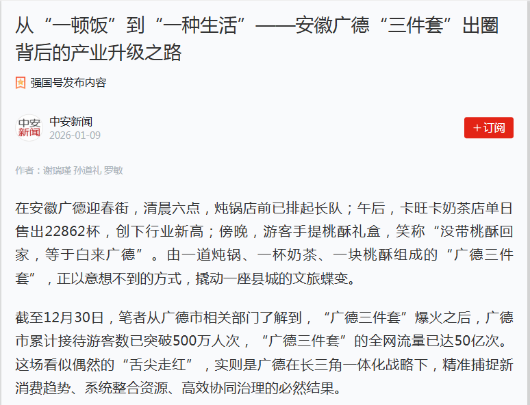 1月9日,我校党委书记谢瑞瑾,资产经营有限公司党委书记、董事长孙道礼等人撰写的《从“一顿饭”到“一种生活”——安徽广德“三件套”出圈背后的产业升级之路》在中安在线强国号发表。文章指出,安徽中医药大学...