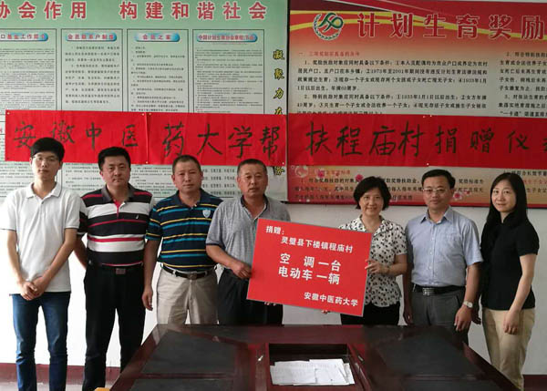 近日,副校长戴敏率队赴学校定点扶贫单位灵璧县下楼镇程庙村调研扶贫工作,看望我校挂职扶贫干部蔡杰、孙道礼、王向阳三名同志,并代表学校向下楼镇程庙村捐赠了一台空调和一辆电动车。学校药学院党委书记吴达武...