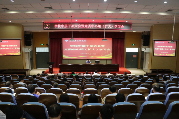 9月19日下午,学校召开中层干部大会暨党委中心组(扩大)学习会,总结2019年上半年主要工作,部署2019年下半年重点工作任务,学习传达有关文件精神。学校领导彭代银、李泽庚、戴敏、魏骅和党委常委罗绍明、侯勇、...