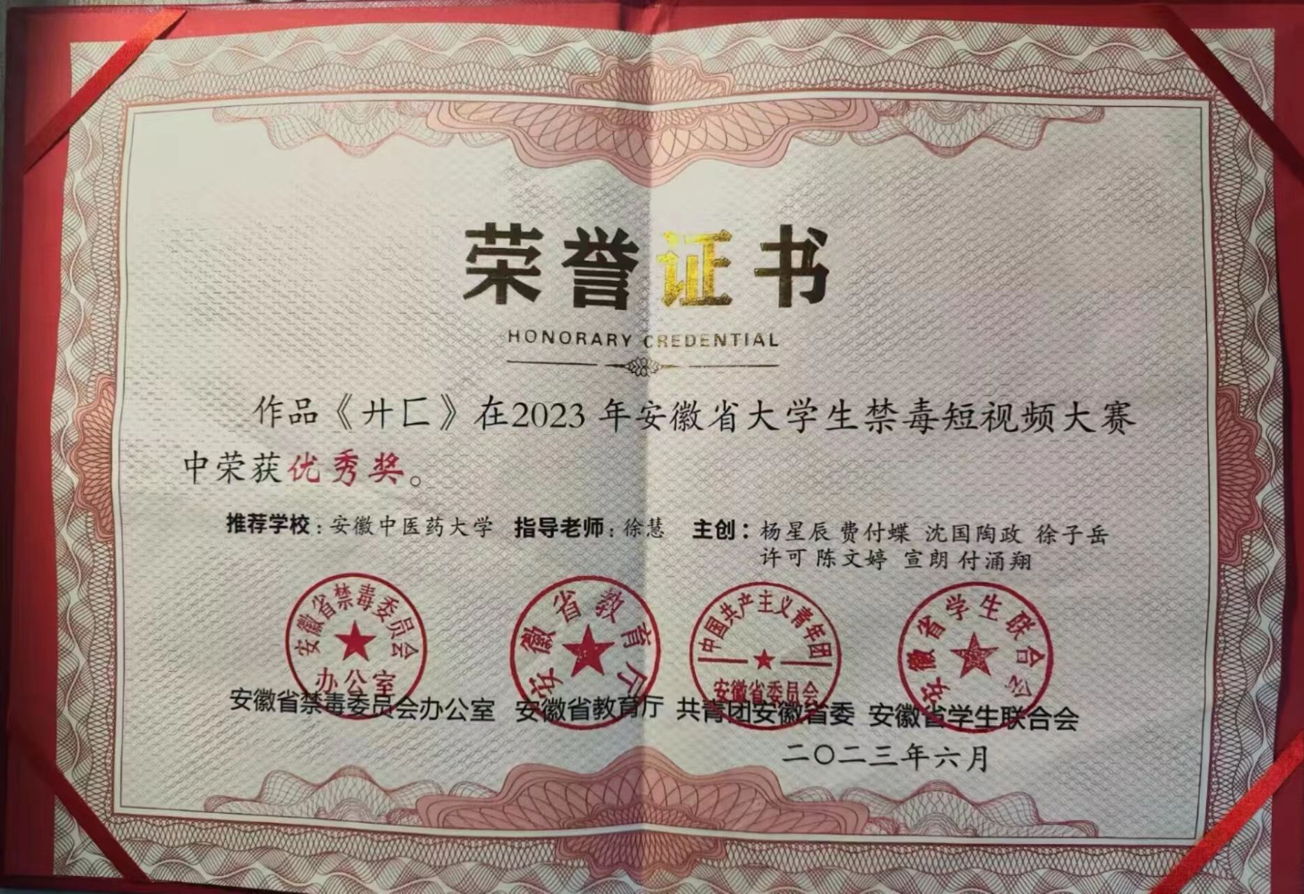 近日,由安徽省禁毒委员会办公室、安徽省教育厅、共青团安徽省委员会、安徽省学生联合会联合主办的2023年安徽省大学生禁毒短视频大赛在合肥师范学院举行,经初复赛选拔的28件作品入围决赛,我校选送作品《廾匸》...