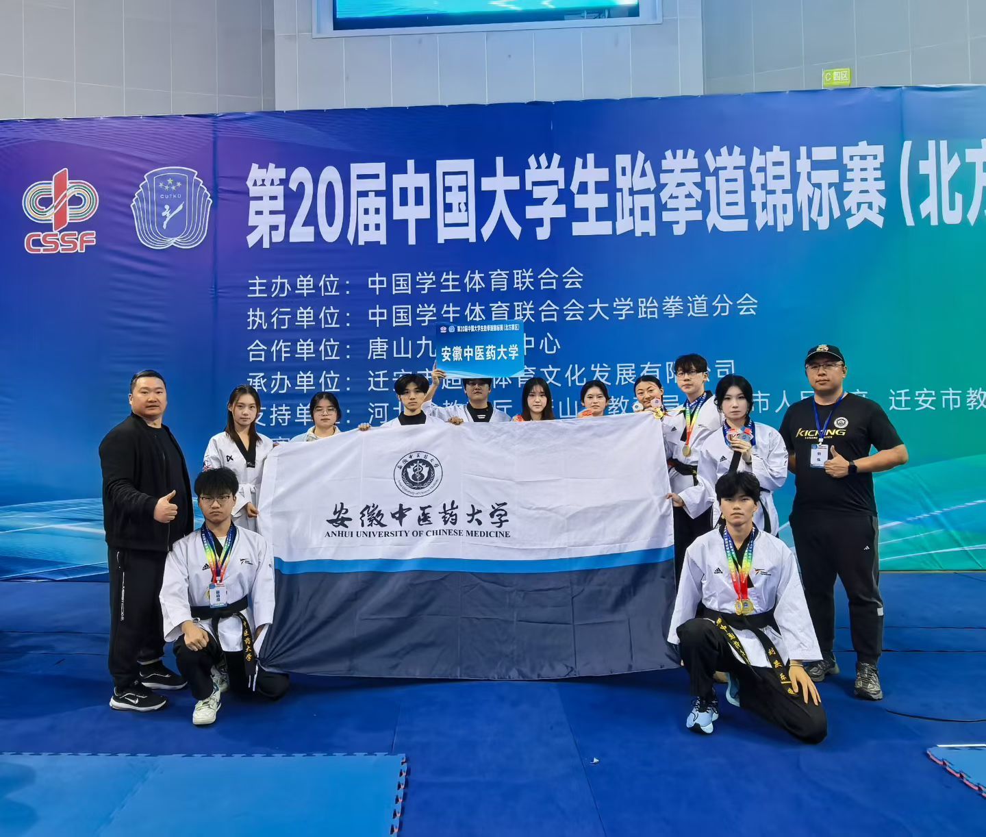 11月11-16日,第20届中国大学生跆拳道锦标赛(北方赛区)在河北迁安市顺利举行,我校11名运动员在全国1200余名顶尖选手的角逐中奋勇拼搏,创下2金1银2铜、1项第五名的历史最好成绩,周航宇同学获评“优秀运动员”...