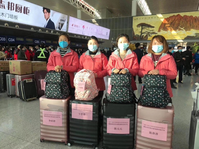 我校16名医护人员将与来自宣城、黄山等8个地市的共计170医务人员汇合,作为安徽省第七批支援武汉医疗队出征。在合肥新桥机场,全体队员举起右拳,庄严誓师,“中国加油、武汉加油、安徽加油!”的口号声响彻候机室。加油!等你们凯旋归来!(第一附属医院、第三附属医院、神经病学研究所/文图 宣传部/编发)