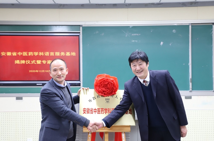 安徽省医学英语学术讲坛(第一期)暨安徽省中医药学科语言服务基地成立仪式于12月18日在我校举行。经过一年多的酝酿、调研、论证,安徽省中医药学科语言服务基地正式成立。该基地作为外教社协同育人平台,由安徽中医药大学和上海外语教育出版社合作共建,由省属医学类院校专家共同参与,是安徽省医学英语年会结出的重要成果,基地将以“服务好中医药学科的外语教育”为发展定位和目标。