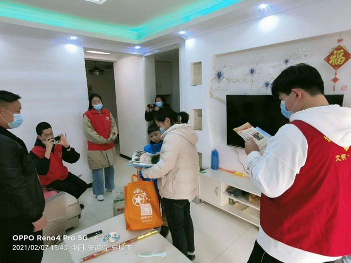 对2020级计算机科学与技术(2)班的汤静羽来说,这个寒假也非常有意义。他参加了扶贫助老志愿服务工作,深入贫困人员家中,结合贫困人员实际需求,准备了大米、油、口罩等生活用品,希望可以缓解他们的经济困难情况。一句句真心的问候,一个个朴实的背影,他希望青年志愿者的真诚与爱心能够久存在他们心底,在寒冷的冬日为他们带去丝丝温暖。