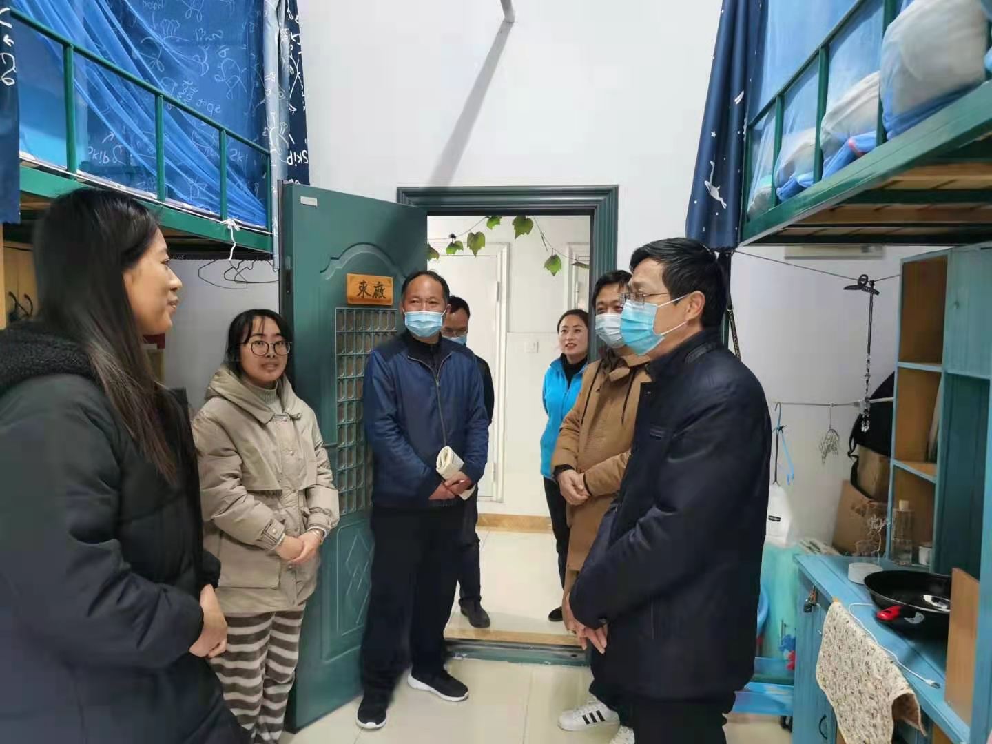 张永群首先到学生食堂对就餐环境卫生、食品安全、防火用电安全等情况进行全面细致的检查。总体看来,食堂的就餐环境、卫生及食品安全管理比较规范,各项工作准备充分。随后,张永群深入学生公寓,了解实习生、研究生的返校情况,与返校实习学生亲切交谈,详细了解学生返校后的学习与生活情况,并就公寓楼层的卫生状况、热水供应情况等后勤保障进行检查。张永群强调,要细心做好师生餐饮保障,做好疫情防控工作,确保师生员工用餐安心、食品卫生及安全,公寓管理工作要抓实、抓细、抓到位,不放过、不遗漏任何细节;要进一步强化安全意识、责任意识,始终把师生生命安全与身体健康放在第一位,从师生在校学习生活工作的实际出发,切实做到科学有效防控,安全有序开学。
