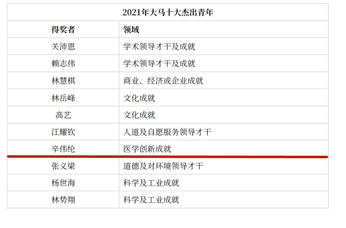 据悉,马来西亚“十大杰出青年”奖的宗旨,是要表扬在专业工作领域上有卓越表现,并对社会作出贡献的大马青年。辛伟纶校友发扬中医文化,心怀大爱,当为青年人的学习楷模。