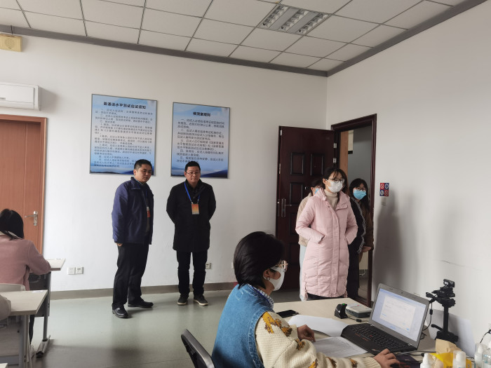 考前,我校测试站对监考教师及学生志愿者开展培训,主要就我校防疫工作政策及安徽省普通话测试中心对考务人员的要求进行传达。整期考试,秩序井然,运行平稳。考试期间,人文与国际教育交流学院书记姚为久、教务处副处长沈安鲁等部门负责人到场巡考并予以指导。学校还结合2021年普通话推广周主题活动,以“普通话诵百年伟业,规范字写时代新篇”为题,举办面向全校学生的普通话测试专题培训及系列宣传活动,为我校普通话推广工作营造积极的校园氛围。