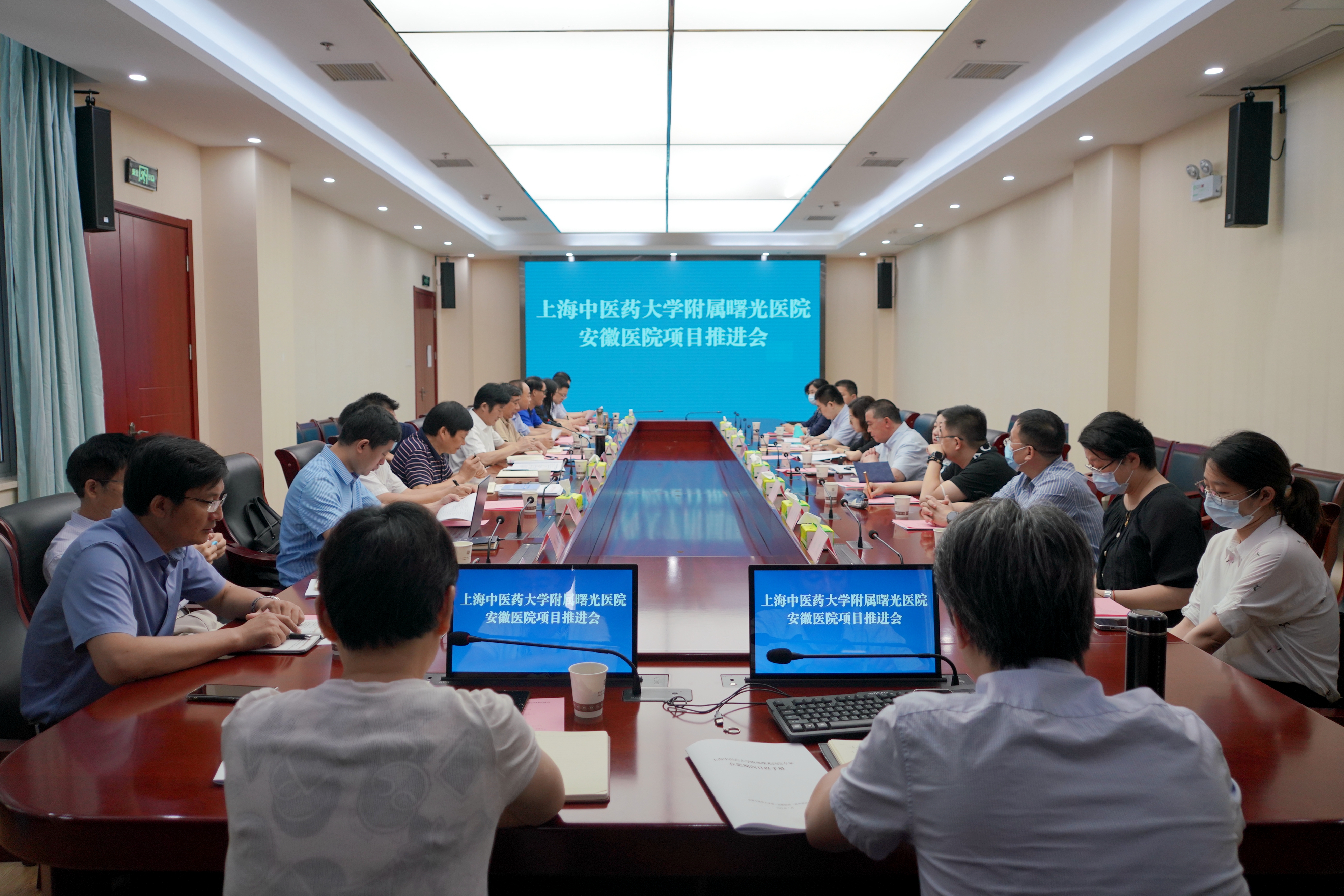 为深度洽谈推进国家区域医疗中心项目建设工作,7月8日上午,学校一附院西区召开上海中医药大学附属曙光医院安徽医院项目推进会。安徽省中医药管理局中医药服务管理处处长张帮友,上海中医药大学附属曙光医院(以下简称“上海曙光医院”)副院长高月求,学校党委书记王琦,党委副书记、校长彭代银,学校党委常委、副校长、科学院专职副院长李泽庚,学校医院事务管理处处长孙道礼,一附院本部及西区班子成员,上海曙光医院管理及技术团队专家代表参加了会议。会议由李泽庚主持。