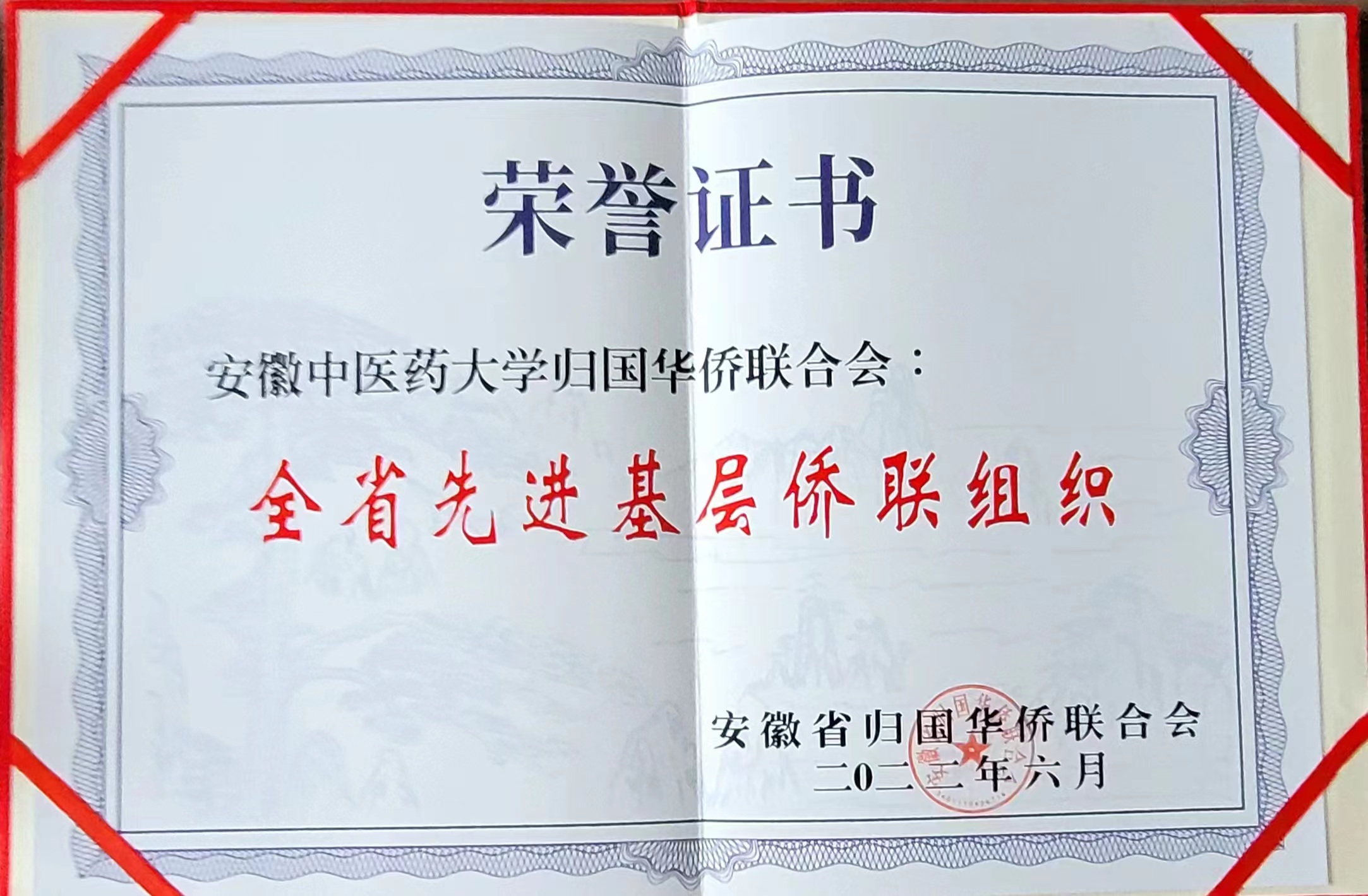 为表扬先进,激发全省侨联系统干事创业的热情,近日安徽省侨联对一批为侨服务有担当、改革创新勇争先的先进基层侨联组织等进行了通报表扬,安徽中医药大学归国华侨联合会获得“全省先进基层侨联组织”称号。