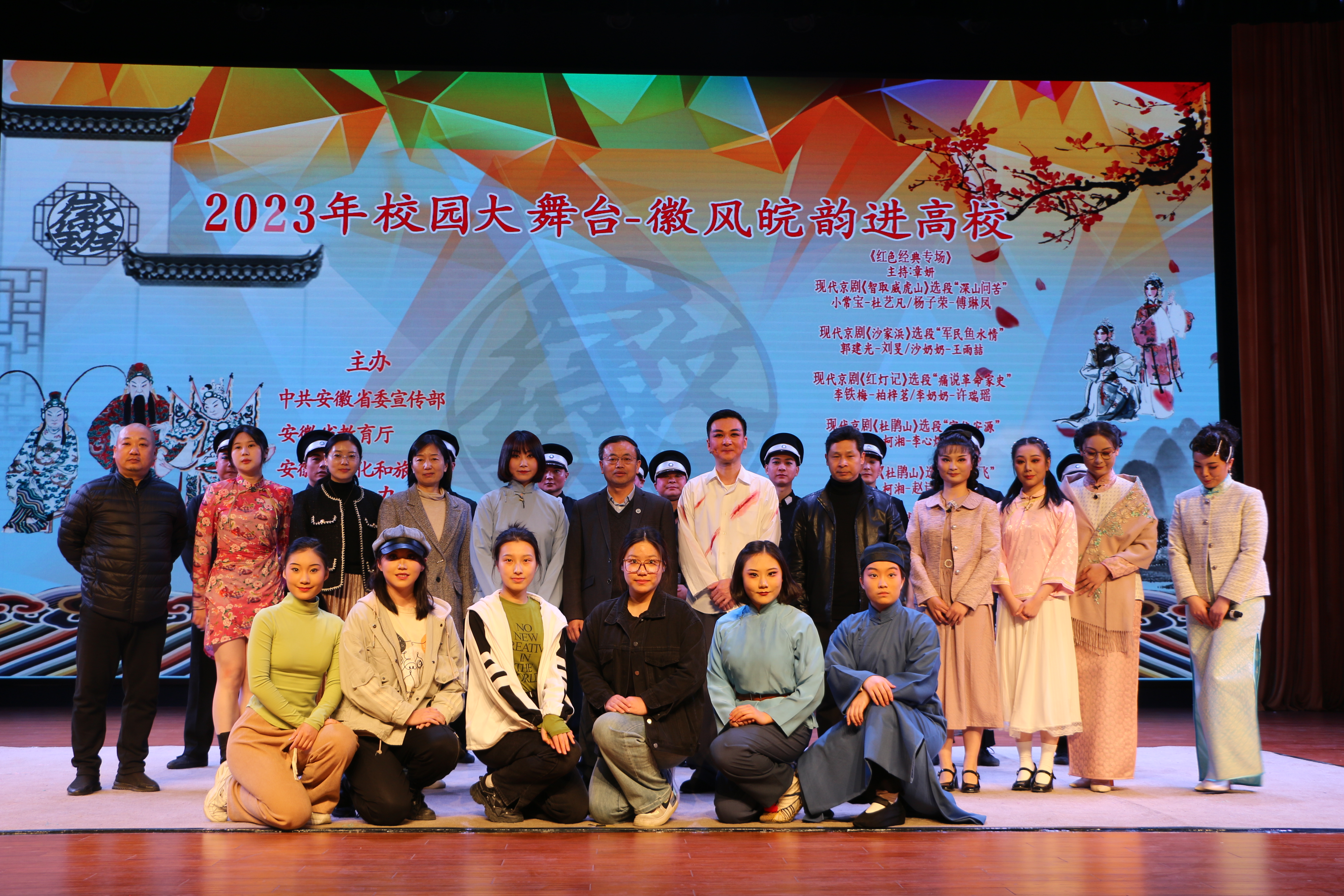 为深入学习宣传贯彻党的二十大精神,认真落实团省委关于“艰苦奋斗 强我中华”主题文化活动的要求,3月28日晚,“2023年校园大舞台-徽风皖韵进高校”活动在我校大学生活动中心精彩上演,学校党委常委、宣传部部长吴达武,安徽省徽京剧院演员团团长杜铭、副团长张凯,校团委、部分师生代表共同观看了演出。