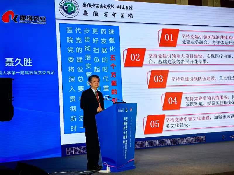 学校党委常委、第一附属医院党委书记聂久胜应邀出席大会,并作题为《做实党建业务互融共进,推动医院高质量发展》的主题报告。聂久胜在主题报告中,简要介绍了医院发展历程和医院基本情况,着重围绕党建业务融合,着力从坚持“党建+政治引领”,思想根基更“牢”;坚持“党建+筑牢堡垒”,组织建设更“实”;坚持“党建+内涵支撑”,发展前景更“广”;坚持“党建+正风肃纪”,医院作风更“硬”;坚持“党建+服务为民”,服务质效更“优”等五个方面作了汇报交流。