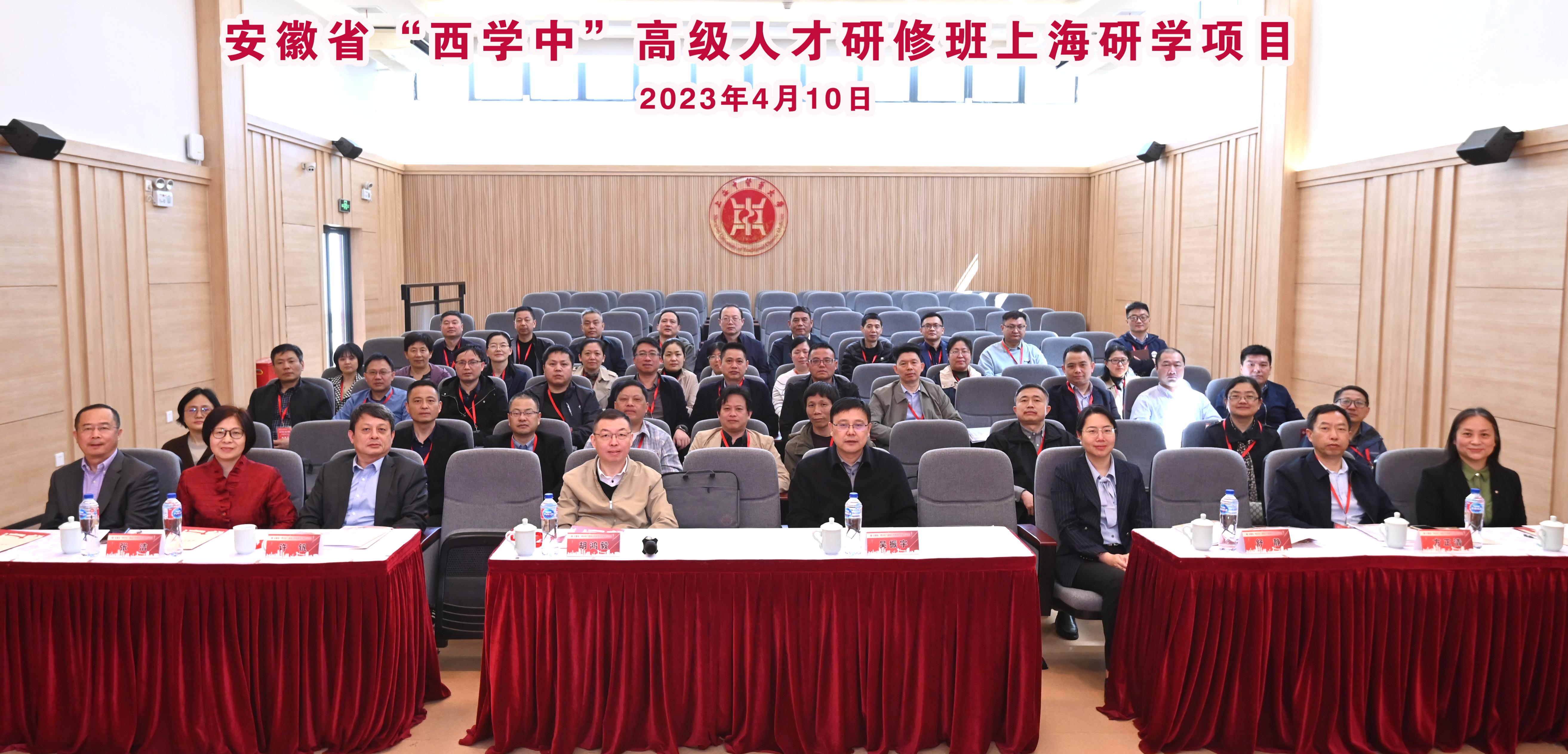 4月10日上午,安徽省“西学中”高级人才研修班上海研学项目在上海中医药大学举行开班仪式,为期一周的研学活动正式开启。安徽省卫生健康委副主任、安徽省中医药管理局局长吴振宇,中医药发展处一级调研员张洁;上海市卫生健康委副主任、上海市中医药管理局副局长胡鸿毅,中医药传承发展处处长姚玮莉;上海中医药大学副校长舒静,继续教育学院院长何文忠;安徽中医药大学副校长许钒、继续教育学院院长方正清出席开班仪式。上海中医药大学和我校继续教育学院相关人员及安徽省“西学中”高级人才研修班全体培养对象参加开班仪式。姚玮莉主持开班仪式。