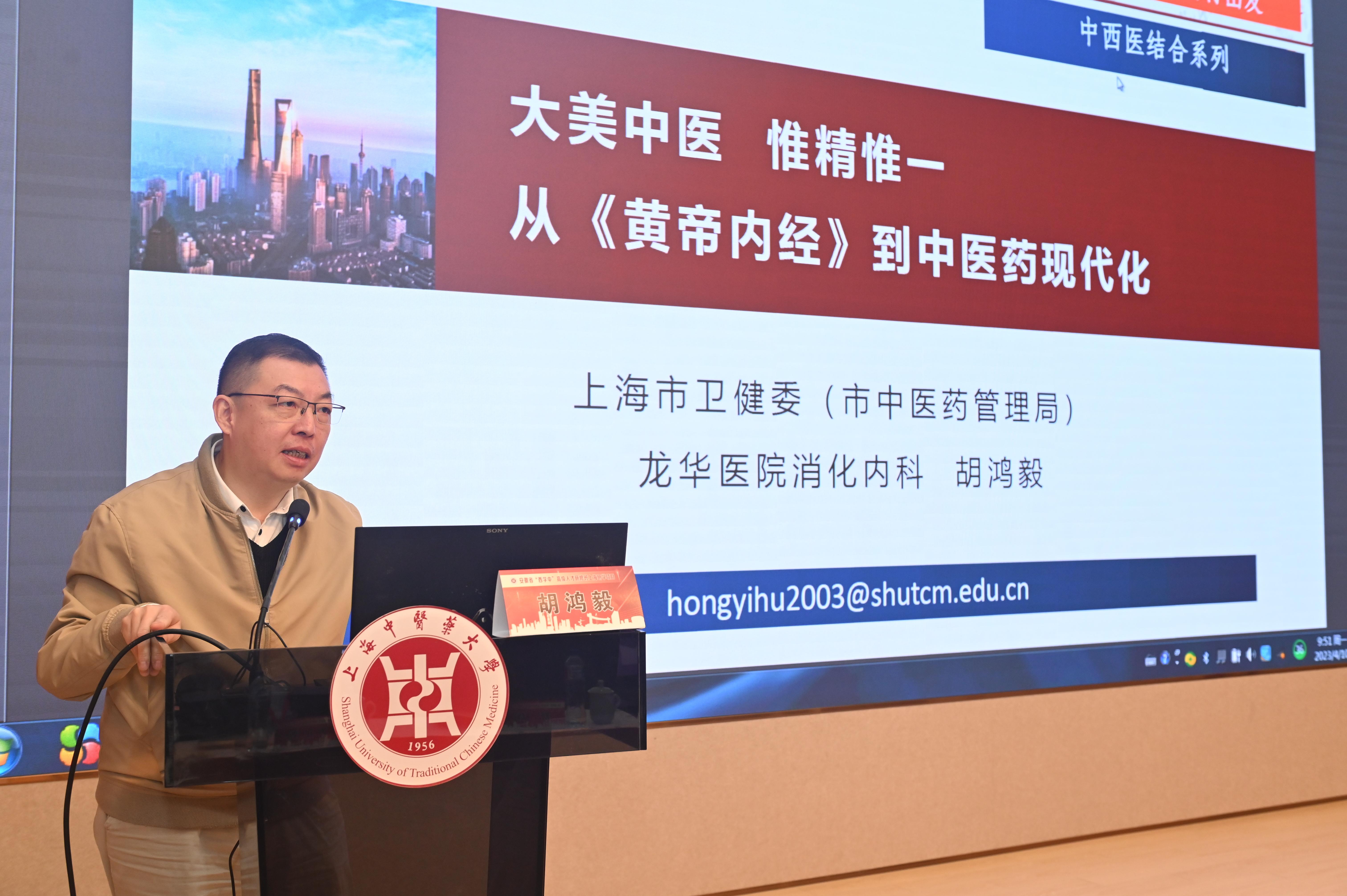 开班仪式后,胡鸿毅教授为全体与会人员作了题为《大美中医惟精惟一——从< 黄帝内经>到中医药现代化》的专题讲座。诠释了《内经》智慧和中医药文化“基因”,指出了中医药现代融合发展之路,使大家深深体会到中医之美。