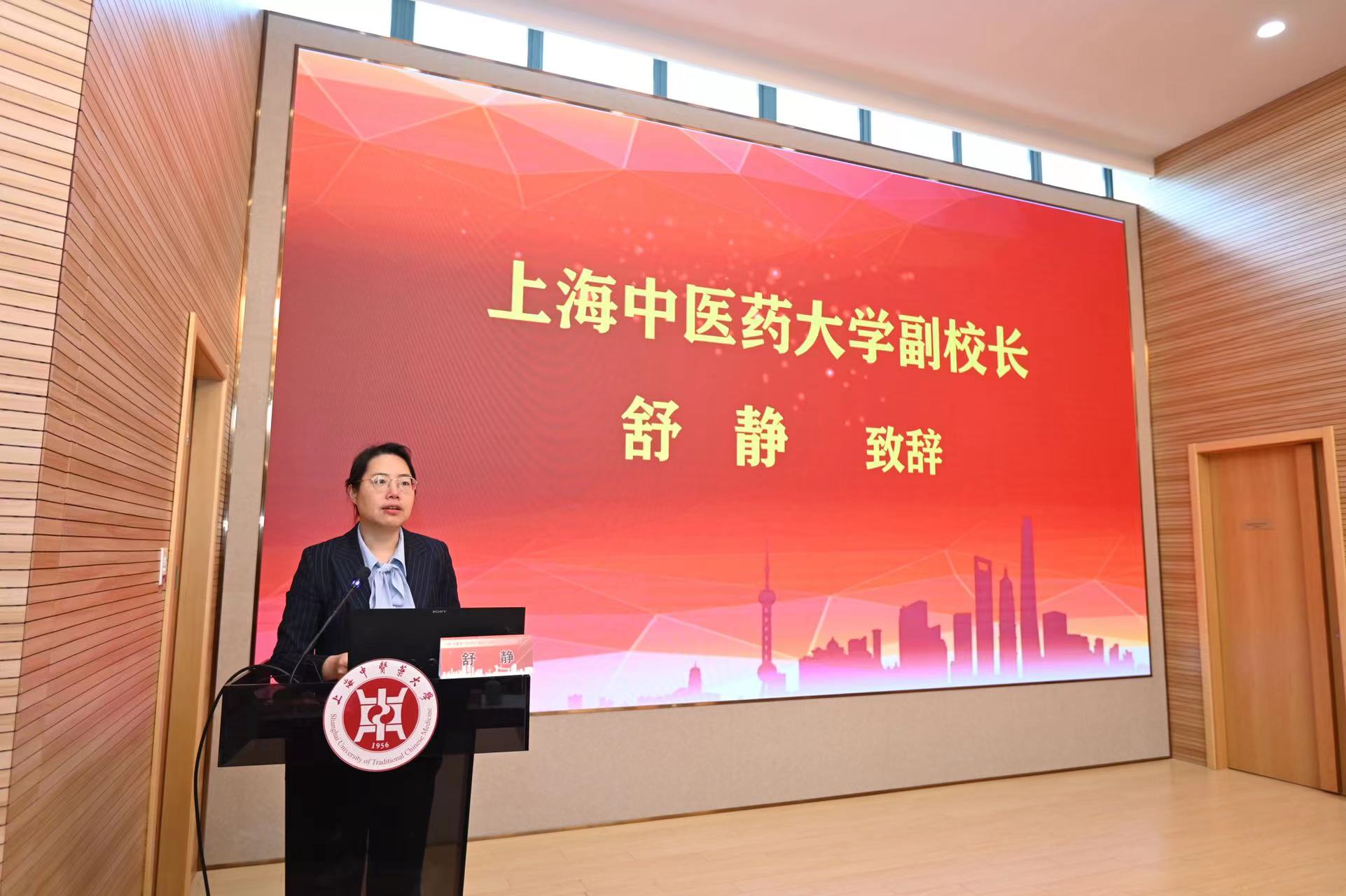 舒静对安徽省卫生健康委、安徽中医药大学领导及安徽省“西学中”高级人才研修班全体学员表示欢迎。她简要介绍了上海中医药大学基本情况及学科特色,同时介绍了学校高层次人才培养平台(优才学院)承担的高级人才培养项目,详细介绍了本次研学活动的各项安排,希望能让大家有所收获,并希望两校在教育资源和人才培养方面能互相促进、共同发展。
