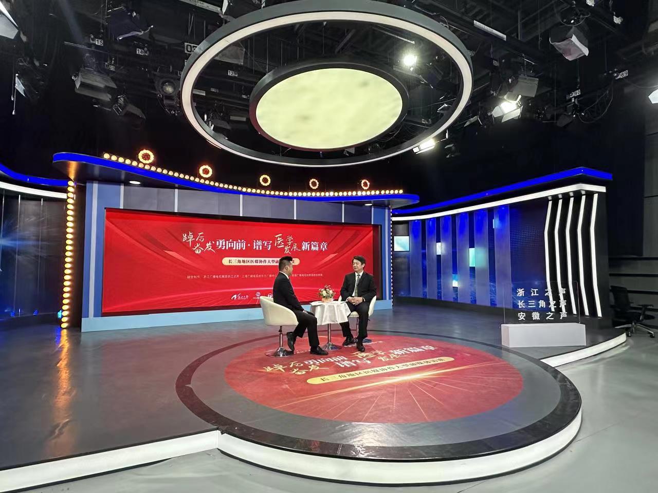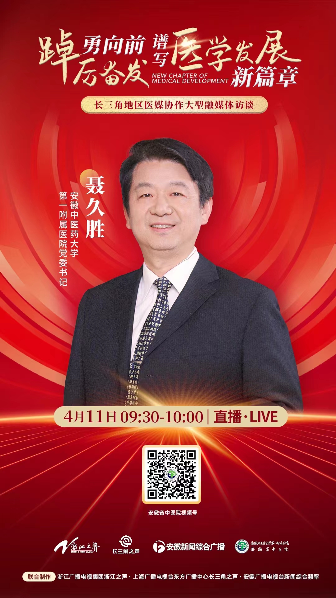 4月11日上午,校党委常委、第一临床医学院党委书记聂久胜受邀参加长三角地区医媒协作大型融媒体节目《踔厉奋发勇向前 谱写医学发展新篇章》直播。“安徽之声”视频号、“安徽省中医院”视频号等进行同步直播。