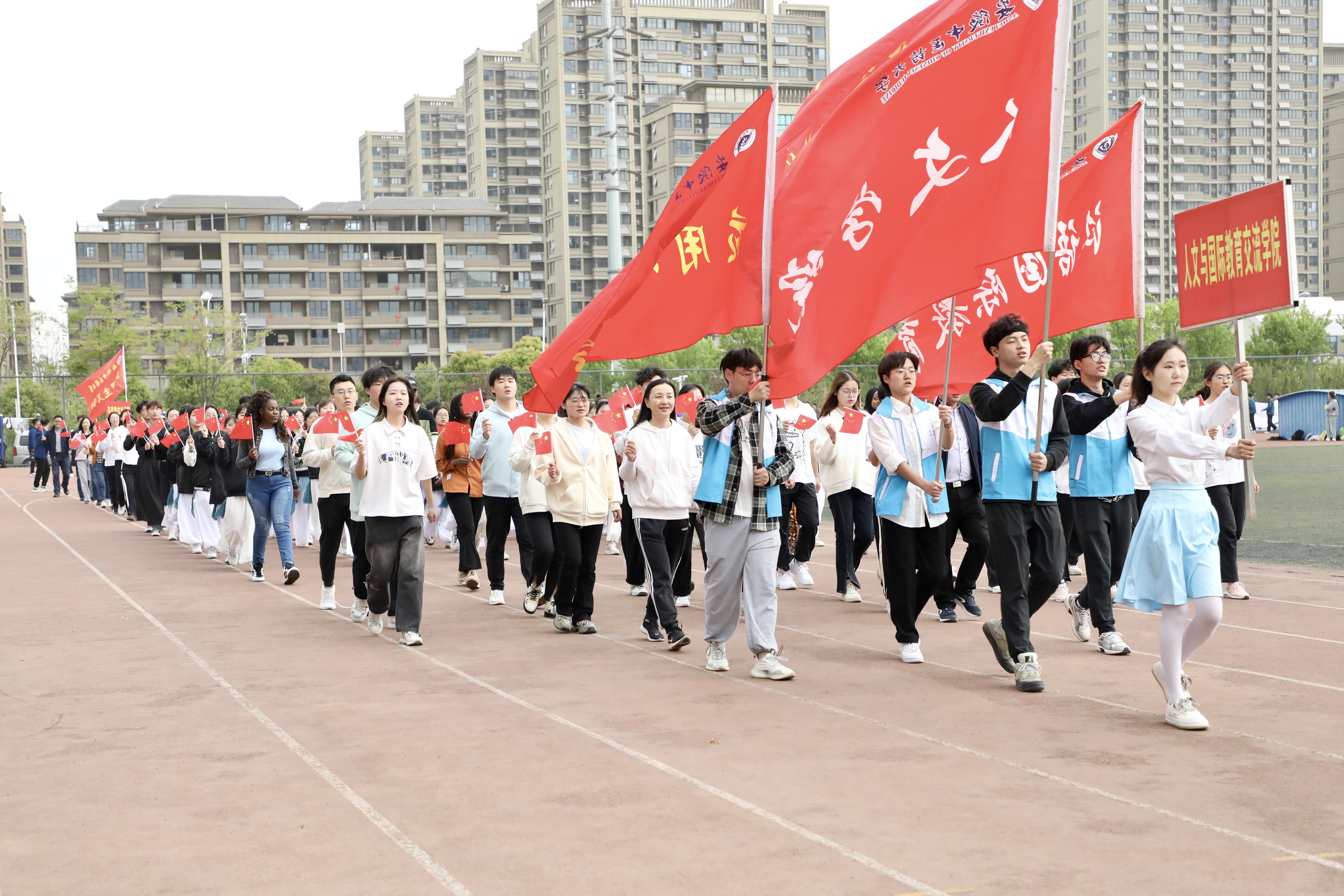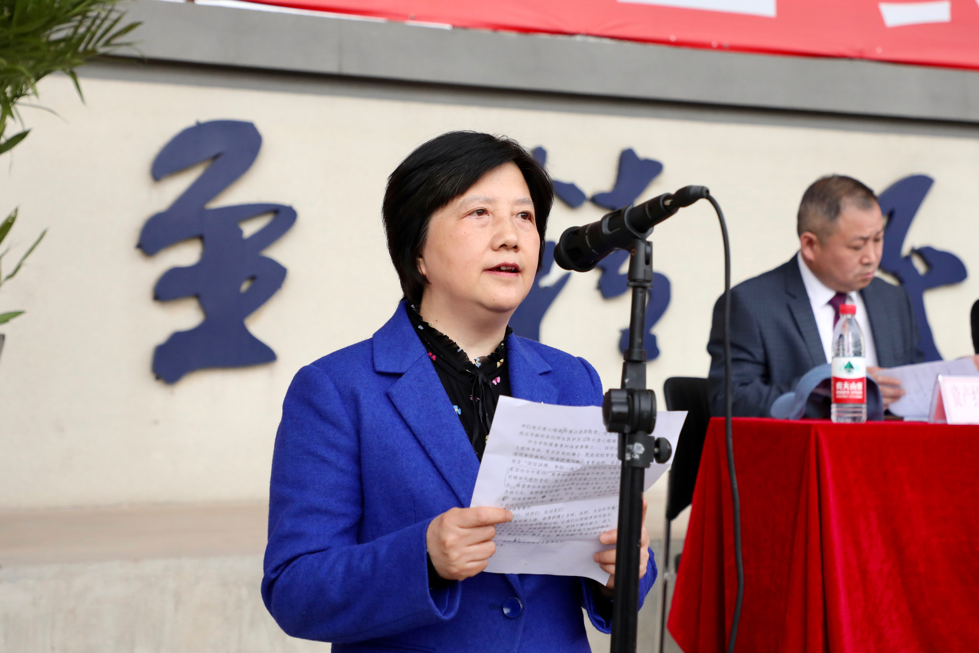 副校长戴敏致运动会开幕词。她表示,田径运动会不仅是学生锻炼身体、展示自我的舞台,更是学校贯彻党的教育方针、推进素质教育、培养优秀人才的重要途径。她指出,随着学校“双一流”建设工作的全面推进,办学规模和办学质量有了显著提高,基础体育设施不断改善升级,广大师生投身体育运动的积极性更加强烈,校园体育运动氛围日趋浓厚,体育竞技水平显著提高。本届运动会的主题是“团结拼搏,争创一流”,希望参加本届运动会的全体运动健儿和工作人员,满怀昂扬斗志,发挥最佳状态,秉持“更快、更高、更强、更团结”的体育精神和“公开、公正、公平”的体育原则,真正把此次运动会办成一届团结、文明、公正、精彩、安全、有序的体育盛会。
