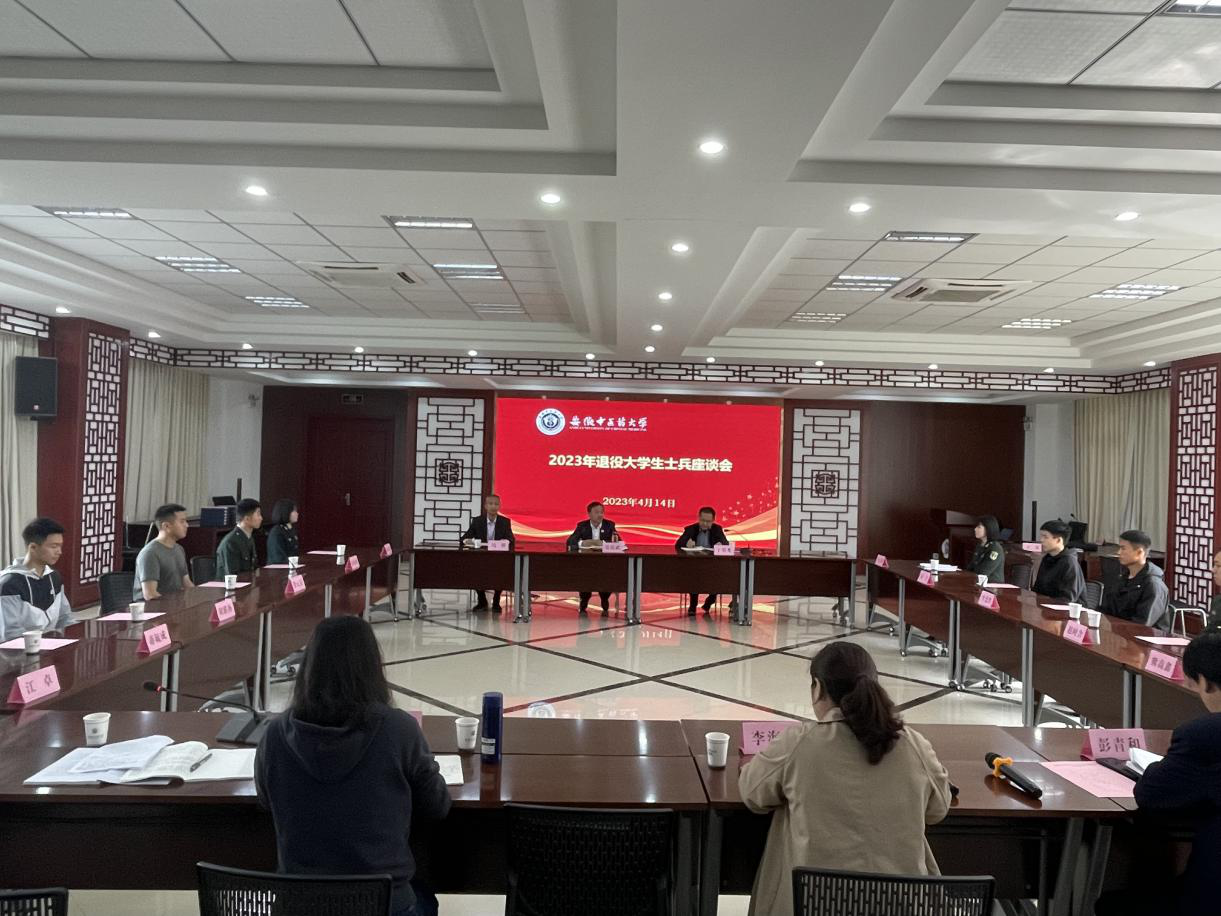 4月14日,我校举行2023年退役大学生士兵座谈会,校党委常委吴达武、武装部部长丁荣光以及中医学院、针灸推拿学院、医药经济管理学院等学院党委副书记出席本次会议。会议由学工部部长冯祥主持。