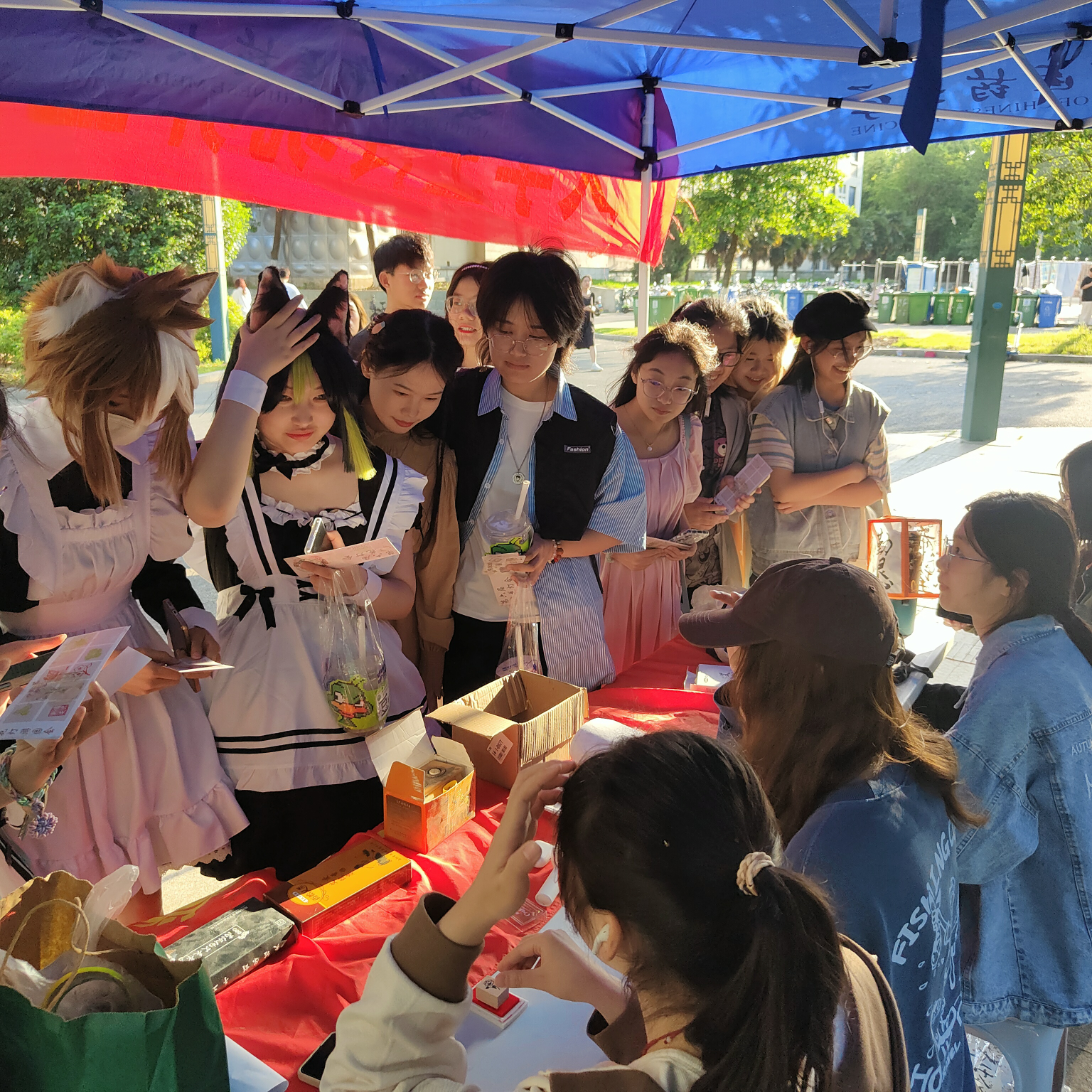 活动现场有挂祈福带、猜灯谜、飞花令、五禽戏、对中药对联、穴位辨识、你画我猜、看图说剧等互动节目,完成相应知识答题,通关后学生可领取精美花灯。
