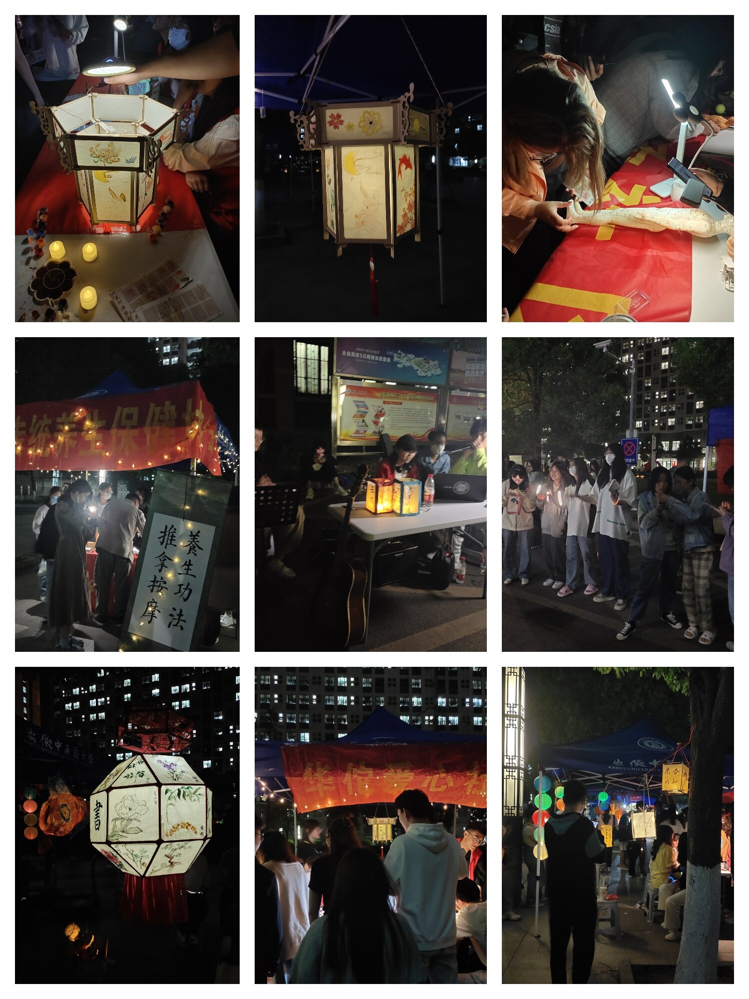 夜幕降临,晚上七点千盏花灯次第点亮,拼出太极图和“我爱安中医”字样,花灯大赏由此拉开帷幕。