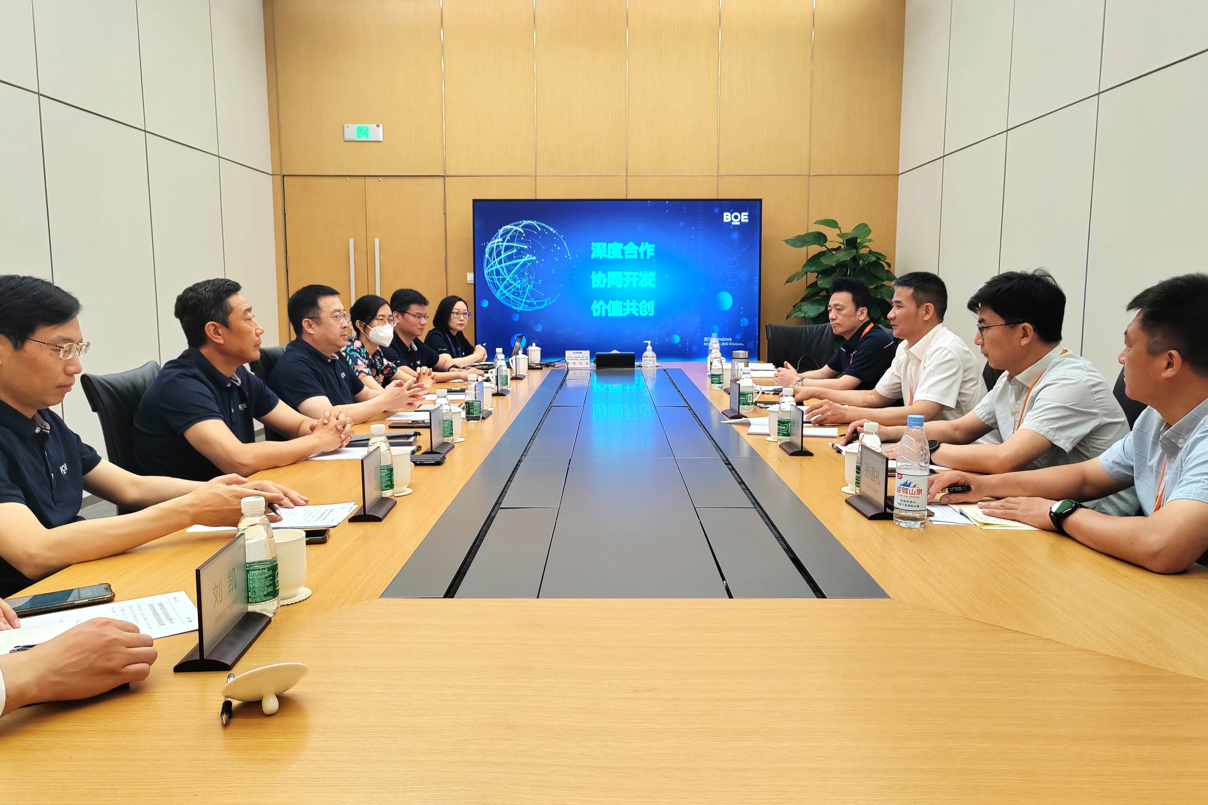 冯强对王琦一行的到来表示热烈欢迎,介绍了京东方科技集团历史和发展现状。他指出,集团形成了“1+4+N+生态链”业务架构,未来将持续扩大智慧医工事业板块规模,须加强与中医药深度融合。合肥是京东方重要的研发和生产基地,集团与安徽中医药大学的理念一致、距离相近,后期可加强多方面合作。