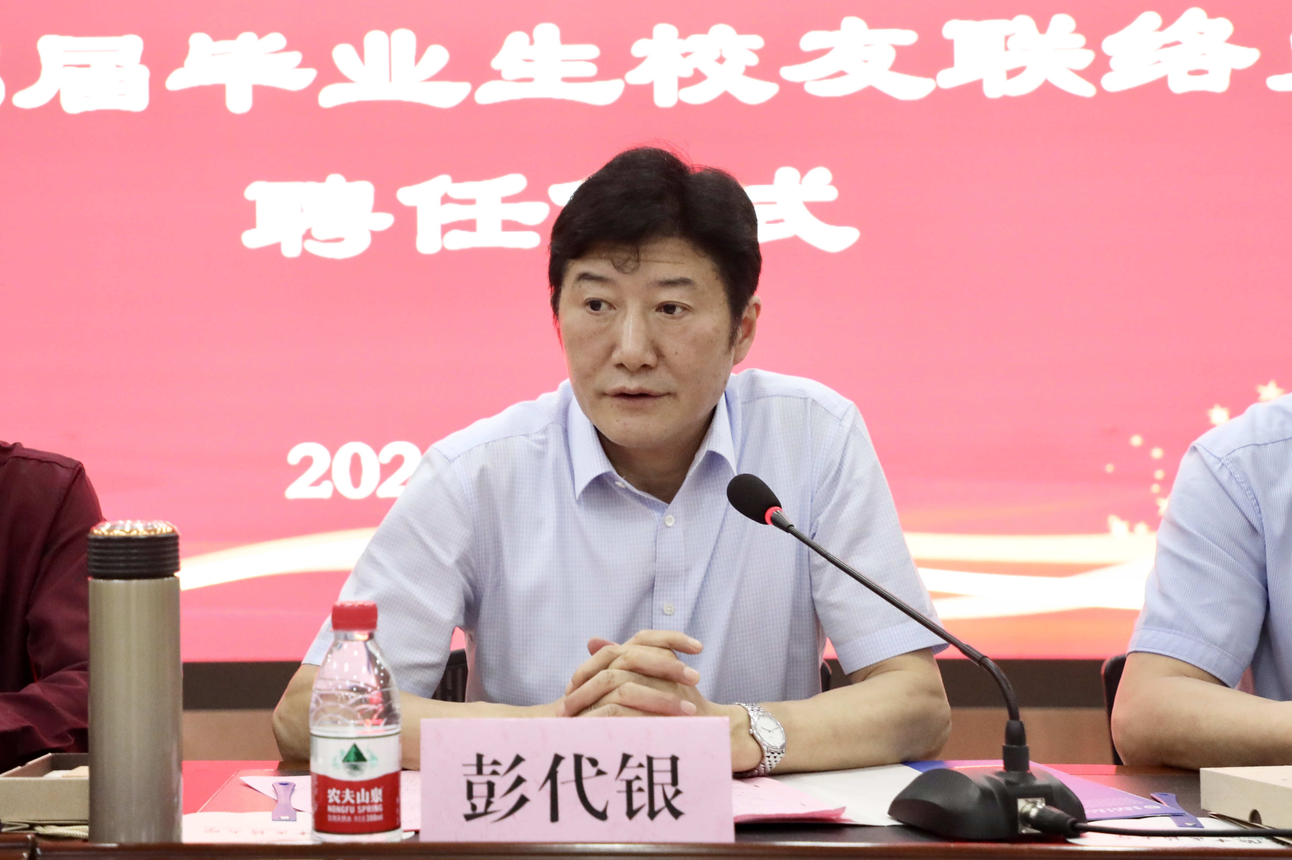 彭代银祝贺同学们顺利毕业并受聘为学校2023届毕业生校友联络员。他简单介绍了学校校友会的情况,并指出,校友工作是学校工作的重要组成部分,是学校教育事业发展的重要推动力量。他对校友联络员们提出殷切期望:一要牢记校训,脚踏实地,做安中医精神传播的示范者;二要不负使命,热情服务,做校友情感的促进者;三要心系母校,砥砺前行,做母校“双一流”建设的助力者。最后,他祝福同学们前程似锦,期待再见时初心依旧。